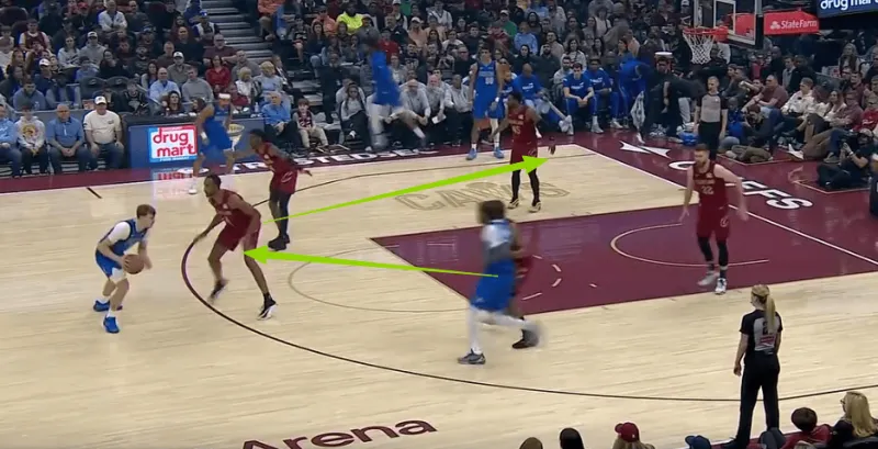 弗拉格Trailer至弧顶后接小内姆传球,马绍尔见埃利斯防守注意力被弧顶持球的弗拉格吸引,立即启动Slot空切直杀篮下予以惩罚,