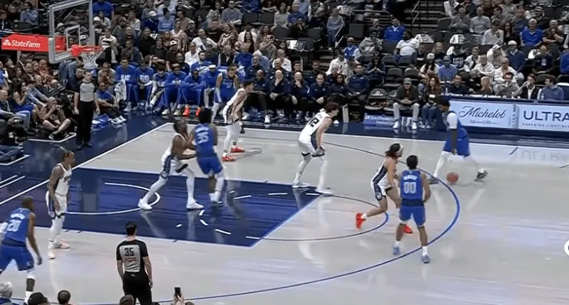 直杀篮下跳起点飞上前协防的米切尔后,立即内传内找到弱侧幽灵区埋伏的华盛顿,