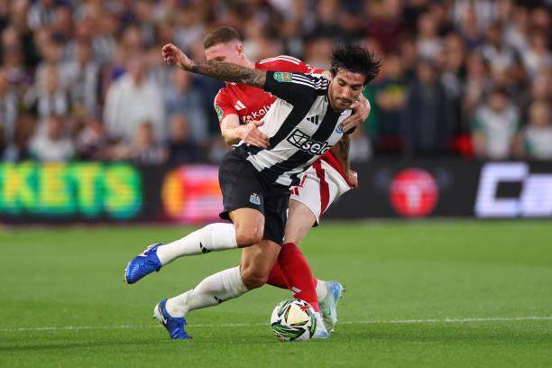 时隔308天,托纳利归来!在今晨的英格兰联赛杯第2轮比赛中,纽卡斯尔联作客诺丁汉森林,上赛季因赌球事件被禁赛的托纳利终于解禁复出。纽卡开场1分钟就先开纪录,托纳利开场后第一脚传球就制造进球:森林门将大脚,纽卡后场抢下皮球,若埃林通分球,托纳利由守转攻第一时间把球向前输送,让纽卡的反击打出了速度,阿尔米龙直塞,伊萨克射门被门将扑出,威洛克补射破门!此时距离比赛开球仅19秒!
