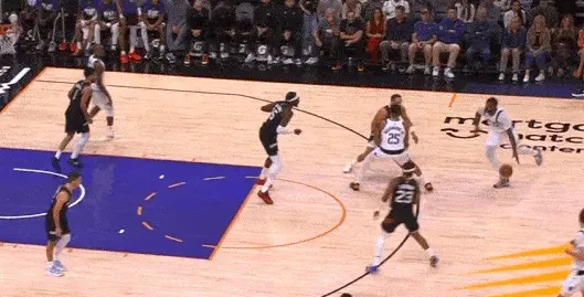 直杀篮下跳起点飞上前协防的米切尔后,立即内传内找到弱侧幽灵区埋伏的华盛顿,